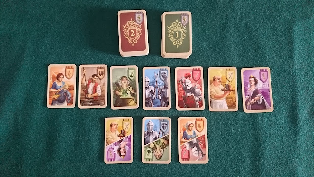 En cuanto a la mecánica, mezcla alguna cosas de algunos juegos. Por ejemplo el tema de comprar las cartas centrales como el Smallworld, es una mecánica que me encanta y la forma de usar los Meeple también me parece novedosa.