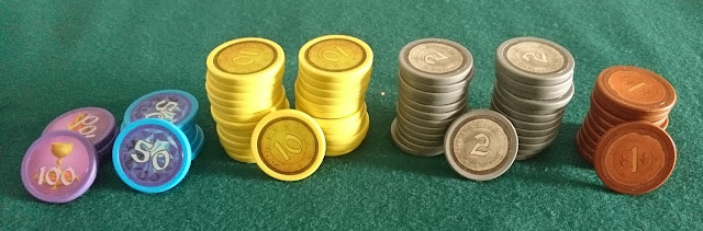 En este juego se ganan constantemente puntos y estar manejando las fichas es un gustazo, cambiando las de 2 por las de 10, luego por 50 y finalmente las de 100. Puede parecer que hay pocas, pero en todas las partidas que he echado, han sobrado.