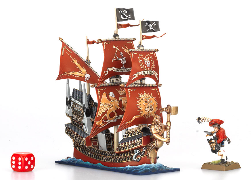 - Dos bandos, en cada bando estaran representadas las razas más conocidas de warhammer, nada de ejércitos ni ampliaciones, el que lleve a los buenos tendrá un barco Imperial, uno de Enanos, otro de Altos Elfos, ... y el que lleve a los malos tendrá un barco de Orcos, otro de Caos, ....