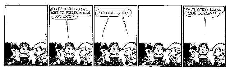 Al leer lo de la mejora de la cohesión social y que "Inculca valores como la determinación, la motivación y la deportividad" he recordado una tira cómica de Mafalda.